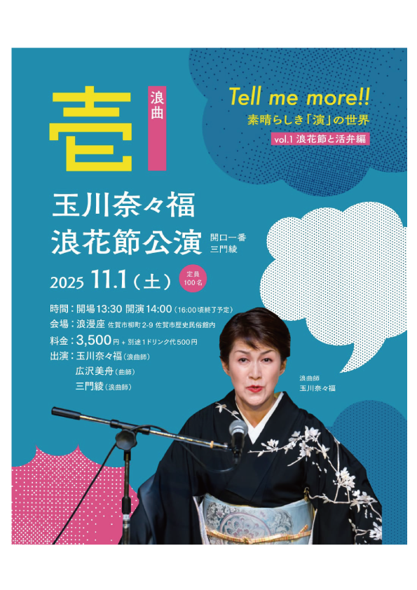 出演:玉川奈々福(曲師:広沢美舟)玉川わ太(曲師:玉川みね子)