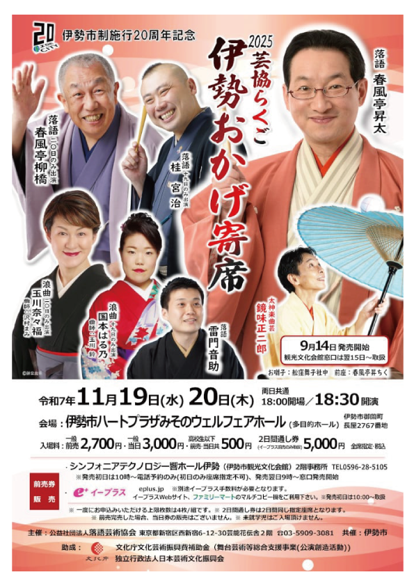 18:30~ 伊勢市ハートプラザみそのウェルフェアホール(多目的ホール)