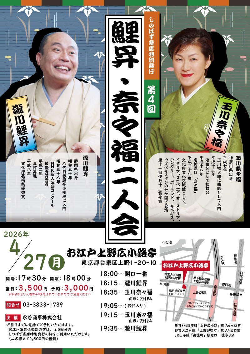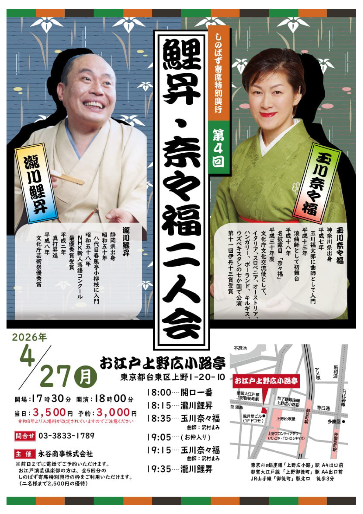 出演:玉川奈々福(曲師:沢村まみ)玉川太福(曲師:玉川みね子)