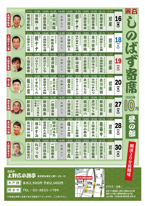 18:00~ 上野広小路亭