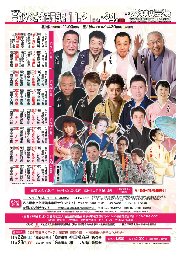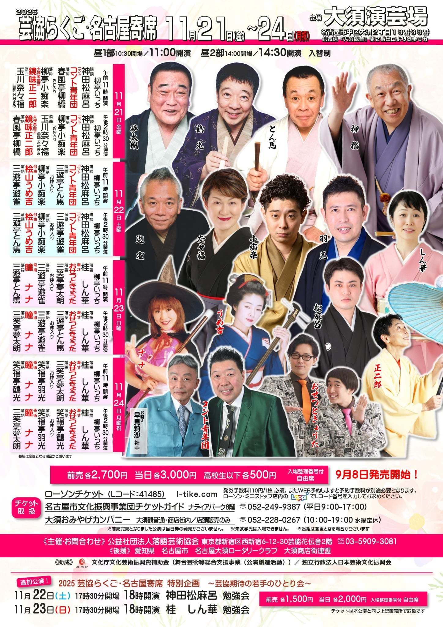 第一部 11:00~、第二部 14:30~ 大須演芸場