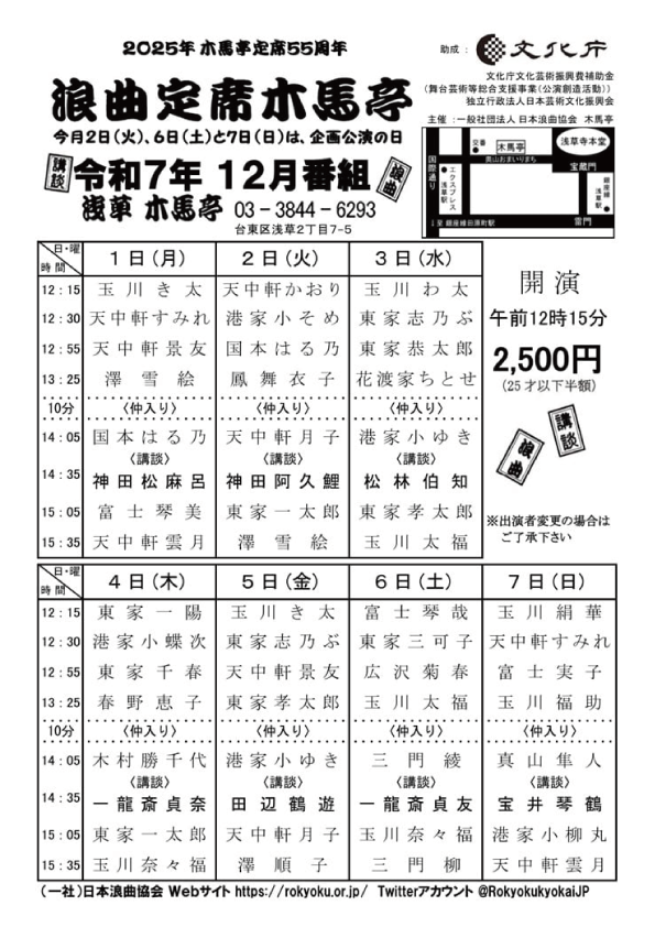 予約:上野広小路亭03-3833-1789 受付時間 11:00~19:00(不定休)