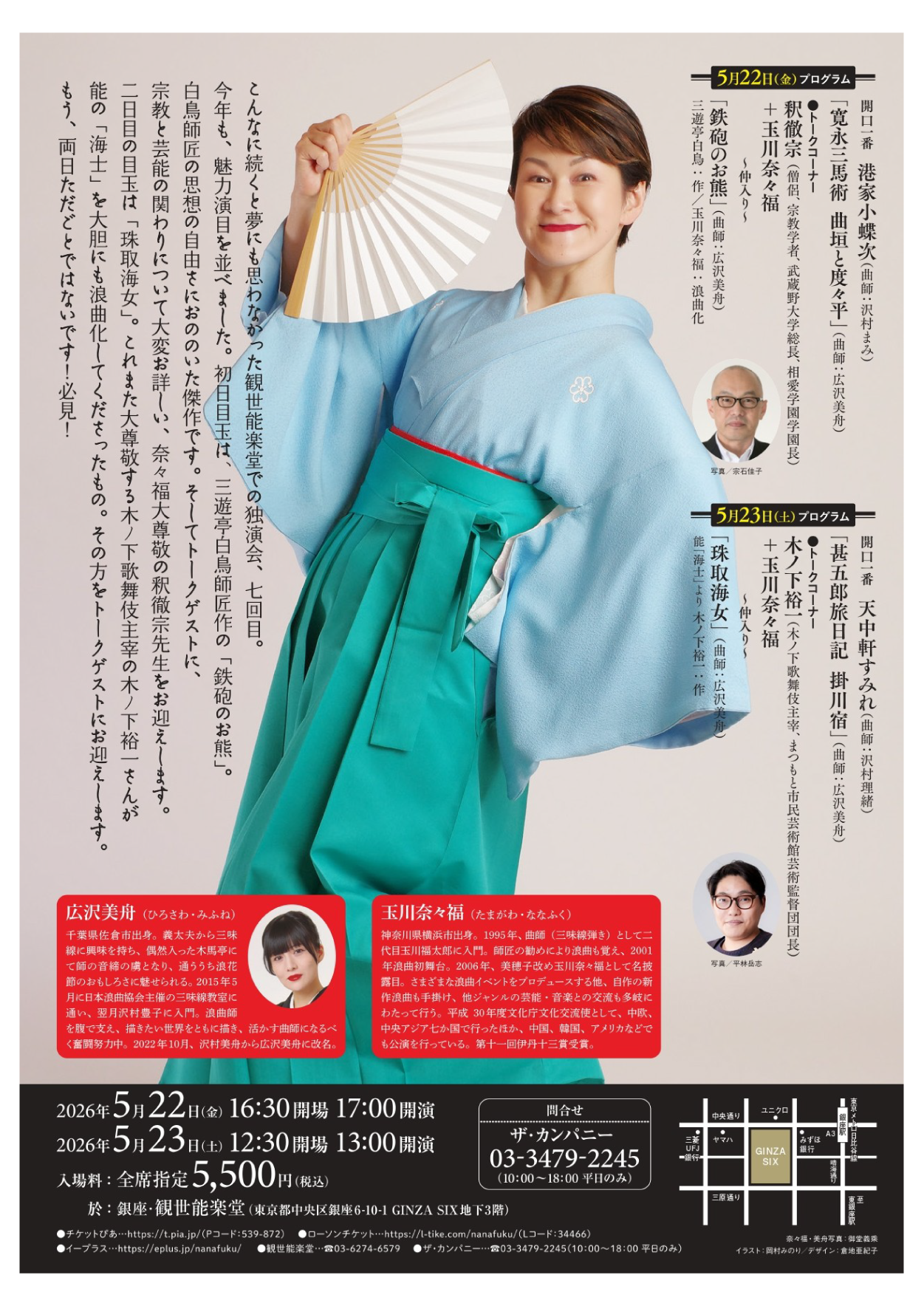 出演:玉川奈々福(曲師:広沢美舟) 開口一番:港家小蝶次(曲師:沢村み)