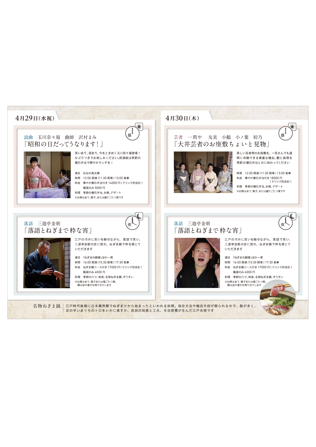 出演:天中軒かおり(博喜)東家三可子(ノリ子)港家小そめ(博喜)天中軒月子(ノリ子)~仲入り~東家孝太郎(まみ)神田菫花(講談)玉川奈々福(まみ)澤順子(貴美江)