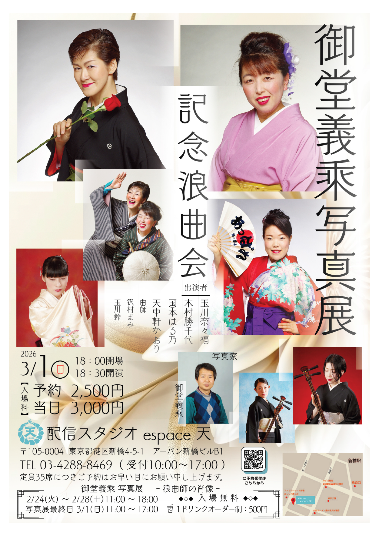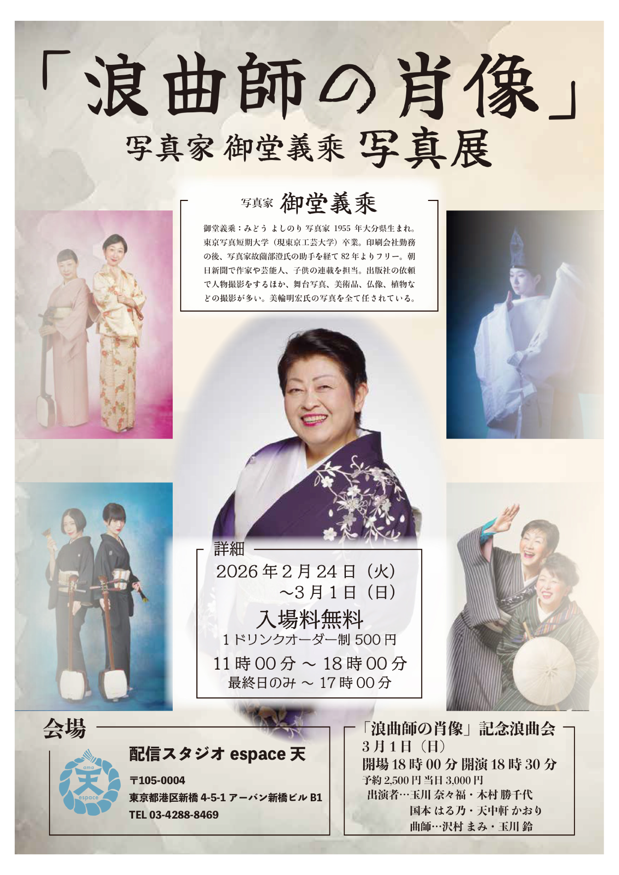 2/24(火)〜3/1(日)「浪曲師の肖像」写真家 御堂義乗 写真展にともなっての記念浪曲会です。
